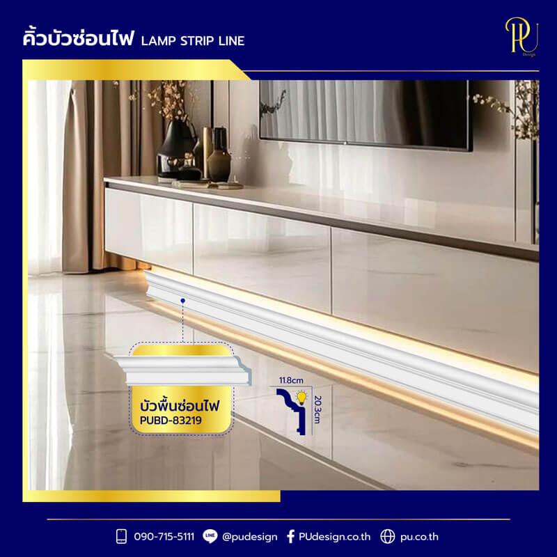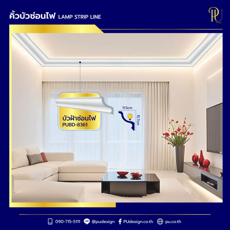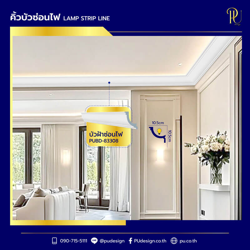 คิ้วบัวซ่อนไฟ จาก PU Design คือทางเลือกใหม่สำหรับการตกแต่งภายในที่ต้องการความสวยงามและฟังก์ชันการใช้งานในหนึ่งเดียว สินค้าในซีรีส์ LAMP STRIP LINE นี้ออกแบบมาเพื่อการติดตั้งระบบไฟส่องสว่างแบบซ่อนไว้ภายในตัวคิ้วบัว ให้แสงสว่างนุ่มนวลกระจายไปทั่วห้อง สร้างบรรยากาศที่หรูหราและทันสมัย
